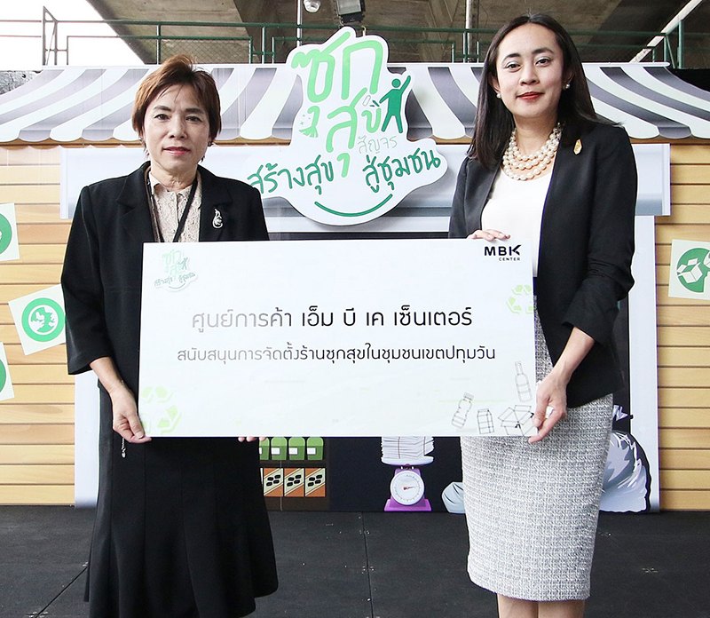เอ็ม บี เค เซ็นเตอร์ ศูนย์การค้าในเครือ เอ็ม บี เค กรุ๊ป ลุยกิจกรรมเพื่อสังคมเพื่อชุมชนเขตปทุมวัน เข้มรณรงค์ปัญหาขยะ-สิ่งแวดล้อม ผนึกกำลังหน่วยงานภาครัฐกรมควบคุมมลพิษ-ตาวิเศษ จัดกิจกรรมซุก สุข สัญจร สร้างสุข สู่ชุมชนสร้างสังคมไร้ขยะ ปลุกกระแสทิ้งถูกที่ คัดแยกถูกถัง ยกระดับคุณภาพชีวิตชาวชุมชนปทุมวัน ส่งต่อองค์ความรู้สนับสนุนหน่วยงานรัฐตั้งร้านซุกสุข โมเดลร้านศูนย์บาทนำขยะแลกเป็นของกินของใช้ จากสถิติของเขตปทุมวันพบว่าขยะมูลฝอยที่เก็บได้ทั้งหมดเป็นขยะเศษอาหาร 50% ขยะรีไซเคิล 30% ขยะทั่วไป 17% และขยะอันตราย 3% ทางเขตจึงให้ความสำคัญในการให้ความรู้ชุมชนในการจัดการขยะเศษอาหาร โดยนำไปทำน้ำหมักชีวภาพทำความสะอาดพื้นและห้องน้ำ หรือนำเศษอาหารไปเป็นอาหารสัตว์ เอ็ม บี เคเซ็นเตอร์ ซึ่งเป็นศูนย์การค้าขนาดใหญ่ในเขตปทุมวันที่ให้ความสำคัญด้านสิ่งแวดล้อม การประหยัดพลังงาน และการรีไซเคิล จึงจัดกิจกรรม “ซุก สุข สัญจร สร้างสุข สู่ชุมชน” ขึ้นโดยมีโมเดลแบบเดียวกับโครงการซุก สุข สิ้นเดือน ซึ่งเป็นร้านศูนย์บาทที่ เอ็ม บี เค กรุ๊ป จัดขึ้นให้แก่พนักงานตั้งแต่ปีที่แล้วและประสบความสำเร็จเป็นอย่างยิ่ง จึงนำมาต่อยอดจัดให้ชุมชนในเขตปทุมวันเป็นครั้งแรก เพื่อให้คนในชุมชนนำขยะและของเหลือใช้ในบ้าน อาทิ กระดาษหนังสือพิมพ์ นิตยสาร รวมถึงขวดพลาสติก กระป๋องน้ำอัดลม และอื่นๆ มาแลกเป็นเครื่องอุปโภค-บริโภค ซึ่งกิจกรรมนี้จะสนับสนุนให้คนในชุมชนเห็นคุณค่าของขยะและเข้าใจวิธีการจัดการและคัดแยกขยะอย่างถูกวิธี