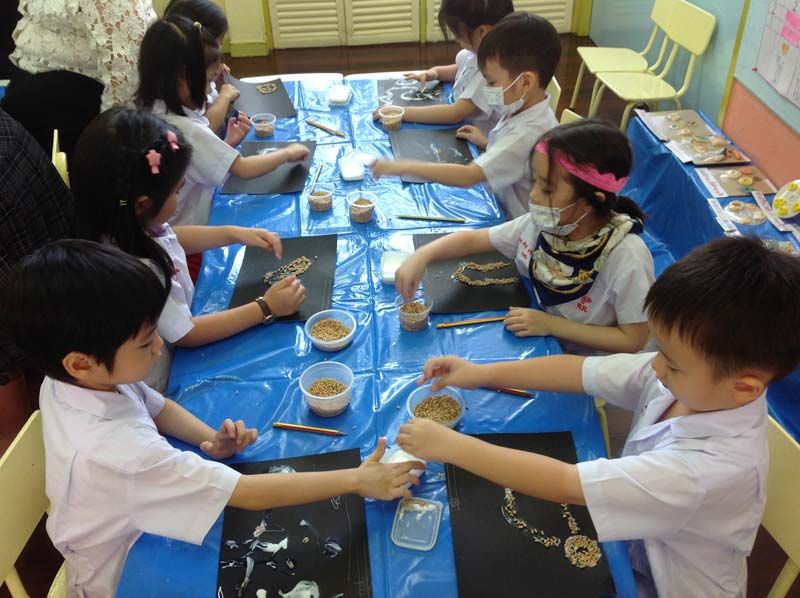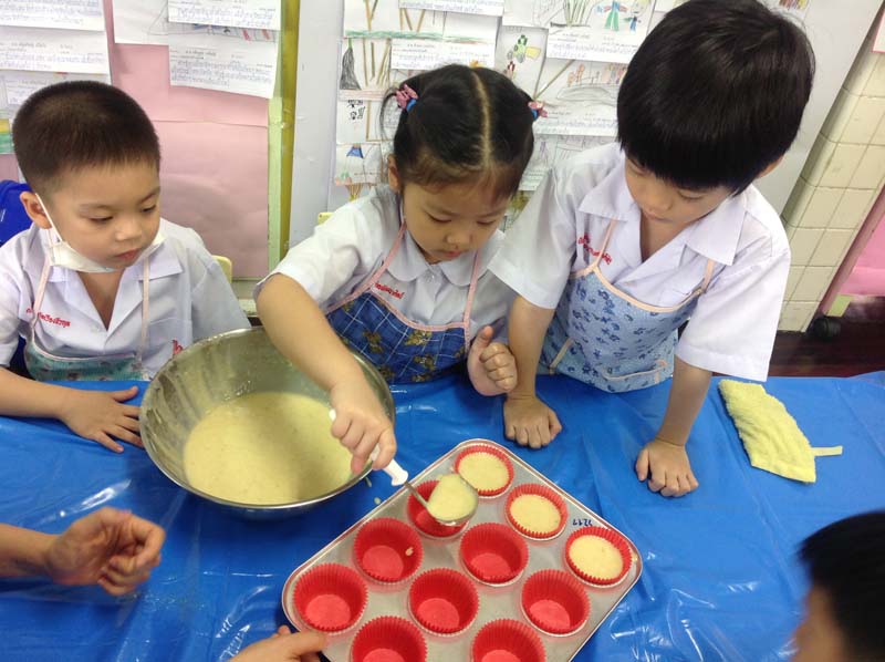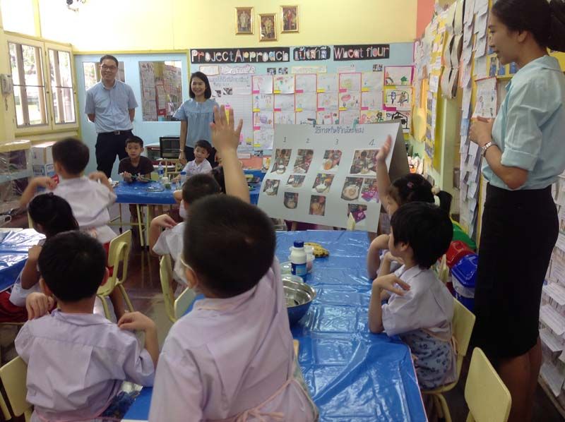 การเรียนรู้ เป็นกระบวนการที่สามารถทำให้เด็กๆ เกิดการเปลี่ยนแปลงทางพฤติกรรม พร้อมกับพัฒนาความคิดและจินตนาการ สานปฏิสัมพันธ์ระหว่างเด็กและสิ่งแวดล้อมในห้องเรียน เช่นเดียวกับโปรเจกท์ แอพโพรช ของเด็กๆ ห้องอ.2/1 โรงเรียนอนุบาลกุ๊กไก่ ที่เด็กๆ ต่างให้ความสนใจและตั้งใจทำผลงานออกมานำเสนอผ่านจินตนาการน้อยๆ ที่เต็มไปด้วยรอยยิ้มความสดใสของเด็กๆ เดินจูงมือคุณพ่อคุณแม่มาชมผลงานนิทรรศการ โดยมีครูยา-ศิรินยา ริดมัด คุณครูประจำชั้น อ.2/1 ต้อนรับบรรดาผู้ปกครองด้วยสีหน้ายิ้มแย้มพร้อมอธิบายถึงการเรียนรู้แบบโปรเจกท์ แอพโพรช ว่าสัปดาห์แรกจะเป็นการเปิดโอกาสให้เด็กๆ ได้ร่วมพูดคุยและเสนอหัวข้อที่ให้ความสนใจอยากเรียนรู้ ครั้งนี้ เด็กๆ มีมติเป็นเอกฉันท์สนใจศึกษาเรื่องแป้งสาลี น้องธารา-ด.ญ.ธารา วิธีเจริญ บอกว่า แป้งสาลีนำมาทำเป็นแป้งโดว์ได้ ปั้นเป็นร้านขายของได้,น้องพิชชี่-ด.ญ.ศรัณย์พิชญ์ มุนีมงคลทร บอกว่า แป้งสาลีนำมาทำขนมเค้กได้ เมื่อเด็กๆ ได้เล่าประสบการณ์เดิมกันแล้ว ก็เริ่มถ่ายทอดประสบการณ์เดิมของตนเองผ่านวิธีการต่างๆ เช่น การวาดภาพด้วยสี ร่วมกันตั้งคำถามที่อยากรู้เกี่ยวกับแป้งสาลี โดยครูยา จะเป็นผู้จดบันทึกสิ่งที่เด็กๆ บอก เช่น น้องบรูคลิน-ด.ญ.พลินฐ์ อริยมหาพงศ์ อยากทราบว่าแป้งสาลีมาจากที่ไหน, น้องนิว-ด.ช.สนันต์ สุขะนินทร์อยากทราบว่า แป้งสาลี นำไปทำขนมได้อย่างไร เป็นต้น