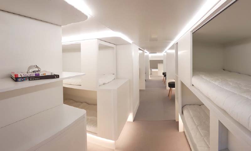แอร์บัส ร่วมมือกับ โซดิแอค แอร์โรว์สเปซ ออกแบบห้องนอนบริเวณด้านล่างของห้องโดยสารเพื่อเพิ่มความสะดวก สบายแก่ผู้โดยสาร