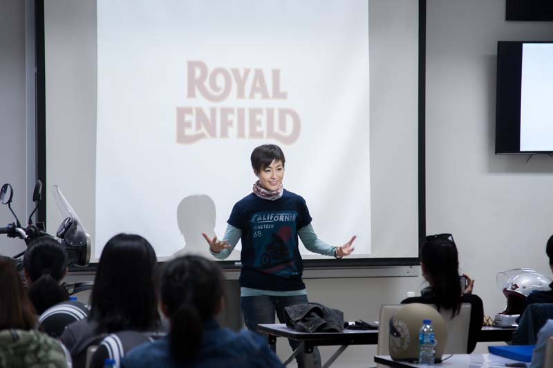 ในงานนี้ 2 กูรูไบเกอร์สาวคนเก่ง หลิง-พีรดา พีรศิลป์ จากเว็บไซต์ ไลฟ์สไตล์ไบค์เกอร์ Shift Up Magazine และ ส้ม-อมรา ศิริพงษ์ นักร้องสาวผู้หลงใหลในการขับขี่รถมอเตอร์ไซค์ และเจ้าของรถมอเตอร์ไซค์รอยัล เอนฟิลด์ คอนติเนนทัล จีที ยังเผย 5 เคล็ดลับเด็ดพิชิตความกลัวการขี่รถมอเตอร์ไซค์สำหรับสาวๆ ด้วย เธอบอกว่า ข้อแรก กล้าเข้าไว้ อย่าได้กลัว หากคิดจะขี่มอเตอร์ไซค์จริงๆ ควรเปิดใจและกล้าที่จะลงมือปฏิบัติ เพราะหากเรายึดติดกับความกลัว เราจะไม่สามารถเอาชนะมันได้ ทั้งนี้ สาวๆ อาจหาแรงบันดาลใจจากการท่องเที่ยว เนื่องจากการขี่รถมอเตอร์ไซค์ท่องเที่ยวจะทำให้เราได้เปิดโลกทัศน์ และสัมผัสประสบการณ์ที่แปลกใหม่แบบที่ไม่เคยหาได้จากที่อื่น