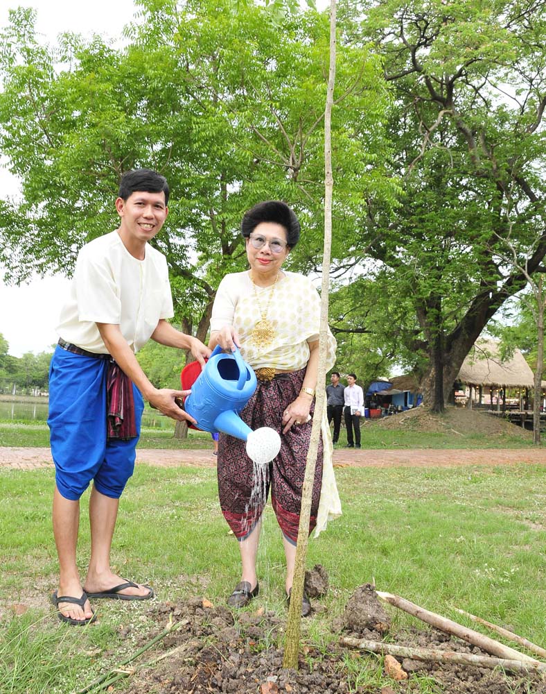 รศ.ดร.วีณา เชิดบุญญชาติ กับ เธียรวิชญ์ ทรัพย์ยุทธ หัวหน้างานบริหารทั่วไป ผู้แทน ผอ.อุทยานประวัติศาสตร์ พระนครศรีอยุธยา ร่วมกันปลูกต้นไม้