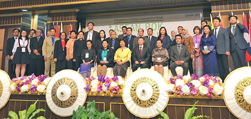 สาธารณรัฐเกาหลี ภายใต้บันทึกความร่วมมือดำเนินงานกับพันธมิตร ได้แก่ สำนักงานคณะกรรมการวิจัยแห่งชาติ (วช.) มหาวิทยาลัยเทคโนโลยีราชมงคลล้านนา (มทล.) และสำนักงานพัฒนาวิทยาศาสตร์และเทคโนโลยีแห่งชาติ (สวทช.) ร่วมกันจัดขึ้น ระหว่างวันที่ 8-11 พฤษภาคม ที่ผ่านมา ณ โรงแรมคุ้มภูคำจ.เชียงใหม่ โดยมีวัตถุประสงค์เพื่อส่งเสริมและสนับสนุนการบริหารจัดการนวัตกรรม ทรัพย์สินทางปัญญาและทรัพยากรต่างๆ รวมถึงส่งเสริมการคุ้มครองและปกป้องทรัพย์สินทางปัญญา ทรัพยากรชีวภาพ รวมทั้งทรัพยากรต่างๆ ให้เกิดประโยชน์และประสิทธิภาพสูงสุด โดยมีประเทศกลุ่มประเทศอาเซียนที่เข้าร่วม 8 ประเทศ ประกอบด้วย อินโดนีเซีย กัมพูชา สาธารณรัฐประชาธิปไตยประชาชนลาว มาเลเซีย ฟิลิปปินส์ สิงคโปร์ เวียดนามและไทย และเจ้าภาพจัดงานคือ สาธารณรัฐเกาหลี