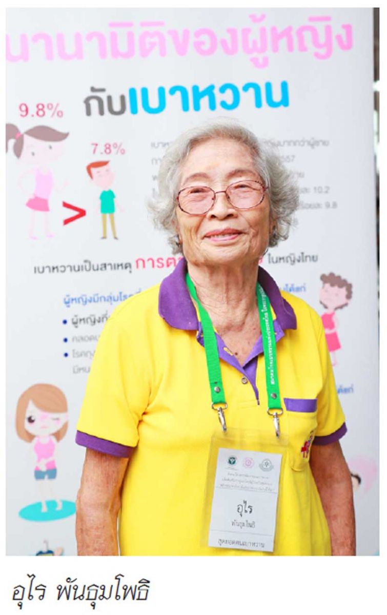 อุไร พันธุมโพธิ อายุ 90 ปี เป็นผู้ที่ได้รับรางวัลสุดยอดผู้ป่วยเบาหวาน เล่าให้ฟังว่า “จากการเข้าร่วมเครือข่ายชมรมเบาหวาน ทำให้ทุกวันนี้ ป้าสามารถควบคุมระดับน้ำตาลได้ดี ไม่มีภาวะโรคแทรกซ้อนใดๆ สิ่งสำคัญจากที่ได้เข้าร่วมเครือข่าย คือผู้ป่วยสามารถเข้าถึงแพทย์และพยาบาลได้อย่างใกล้ชิด โดยใช้สื่อโซเซียลมีเดียเป็นตัวกลางในการสื่อสาร ทั้งกลุ่มไลน์, เฟซบุ๊ค ฯลฯ ซึ่งบุคลากรทางการแพทย์จะร่วมอยู่ในกลุ่มด้วย เมื่อผู้ป่วยเกิดสงสัยมีข้อซักถามก็จะได้รับคำตอบอย่าง