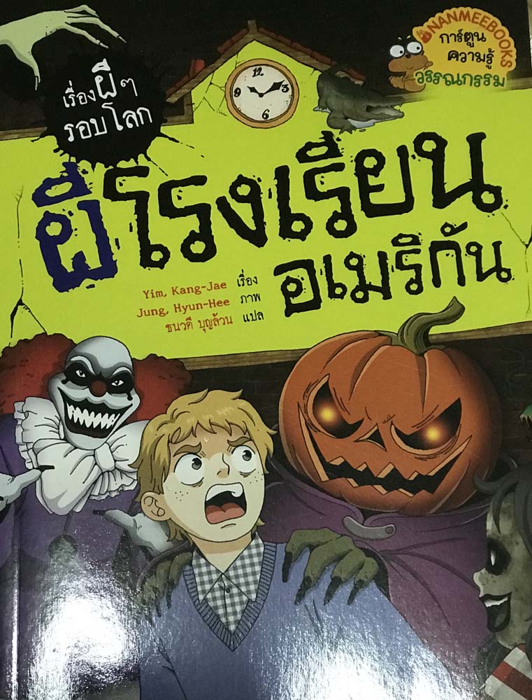 การ์ตูนความรู้ เรื่องผีๆ รอบโลก เล่มผีโรงเรียนอเมริกัน เป็นการเล่าเรื่องความเชื่อและตำนานหลอนของโรงเรียนอเมริกัน ผ่านเรื่องภูตผีปีศาจจากอเมริกาที่หลายคนยังไม่รู้ เช่นงานพรอมคลั่งซอมบี้ วิญญาณพิโรจน์ และของขวัญคริสต์มาส ฯลฯ เรื่องราวแต่ละเรื่องสนุกหักมุม หลอน สยอง แต่ก็มีสาระ แทรกคติสอนใจให้เด็กๆ อยากทำความดีและเว้นทำบาปทำกรรม นอกจากนี้ยังมีการเล่าเรื่องความรู้เรื่องเกร็ดตำนานและความเชื่อต่างๆ อีกด้วย ราคา 175 บาท