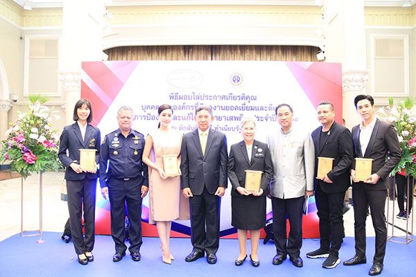 พิม-พิมประภา ตั้งประภาพร นักแสดงจาก ช่อง 7HD เข้ารับโล่ประกาศเกียรติคุณฯ จาก พลอากาศเอก ประจิน จั่นตอง รองนายกรัฐมนตรี ในฐานะผู้ร่วมรณรงค์ประชาสัมพันธ์เนื่องในวันต่อต้านยาเสพติดโลก(26 มิถุนายน) ประจำปี 2561 ภายใต้แนวคิด “ไทยนิยม ยั่งยืน ร่วมแก้ไขปัญหายาเสพติด (26 มิถุนายน)วันต่อต้านยาเสพติดโลก” ณ ตึกสันติไมตรี (หลังนอก) ทำเนียบรัฐบาล