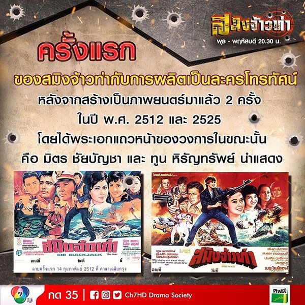 ติดตามชมละคร “สมิงจ้าวท่า” ได้ทุกคืนวันพุธ-พฤหัสบดี เวลา 20.30 น. ทางช่อง 7HDกด 35 และ Facebook LIVE ทาง Fanpage Ch7HD หรือสามารถรับชมการออกอากาศย้อนหลังได้ทาง BUGABOO.TVฝากติดตามเพลงประกอบละคร สมิงจ้าวท่า ร้องโดย : บูม กิตตน์ก้องได้ที่ลิงค์ : https://www.youtube.com/watch?v=X8fEn-9VZqM