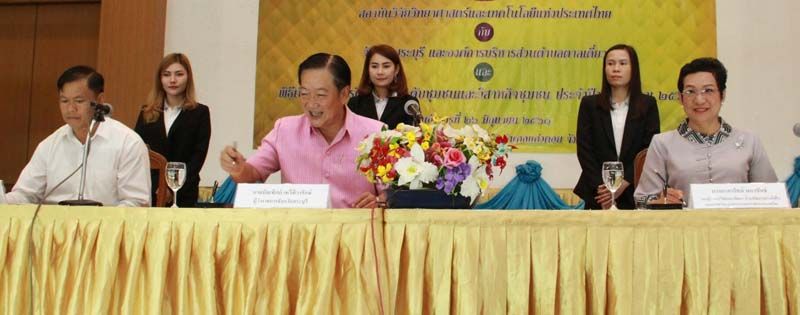 บัณฑิต เทวีทิวารักษ์ ผู้ว่าราชการจังหวัดสระบุรี,ดร.อาภารัตน์ มหาขันธ์ รองผู้ว่าการวิจัยและพัฒนา ด้านพัฒนาอย่างยั่งยืน สถาบันวิจัยวิทยาศาสตร์และเทคโนโลยีแห่งประเทศไทย (วว.) กระทรวงวิทยาศาสตร์และเทคโนโลยี และ มงคล สุขศาลา นายกองค์การบริหารส่วนตำบลตาลเดี่ยว ร่วมลงนามบันทึกข้อตกลงการทำงาน “โครงการแก้ไขปัญหาสิ่งแวดล้อมและขยะพลาสติกในชุมชนเพื่อการบูรณาการอย่างยั่งยืน” เพื่อขับเคลื่อนนโยบายโครงการจังหวัดสะอาด ในการแก้ไขปัญหาขยะชุมชนด้วยผลงานวิจัยพัฒนาด้านวิทยาศาสตร์เทคโนโลยี และนวัตกรรม (วทน.) มุ่งสู่การบูรณาการทุกภาคส่วนภายในประเทศอย่างยั่งยืน