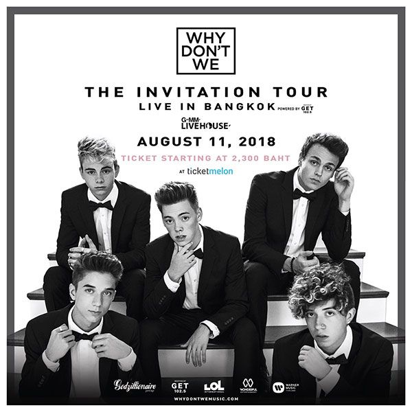แล้วเตรียมไปสัมผัสความน่ารักของ 5 หนุ่ม Why don’t we แบบเต็มๆกันได้ใน ‘Why Don’t We The Invitation Tour Live in Bangkok 2018’ วันเสาร์ที่ 11 สิงหาคม 2561 @ GMM LIVE HOUSE Central World