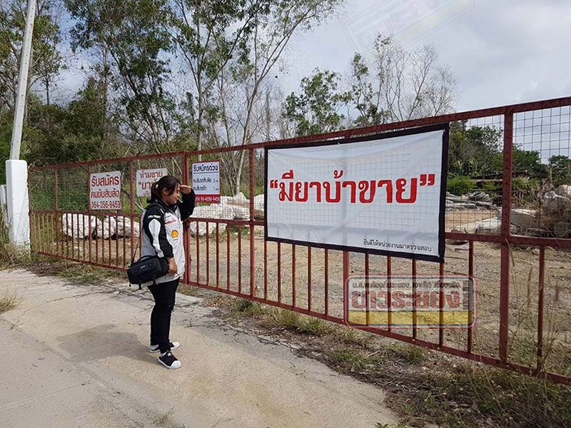 6 มี.ค. 61 เพจเฟซบุ๊ก “หนังสือพิมพ์ข่าวระยอง” ได้เปิดเผยจากการลงพื้นที่ หลังได้รับแจ้งจากชาวบ้านในหมู่บ้านตะพงใน ถ.โขดมะม่วง ม.1 ต.ตะพง อ.เมือง จ.ระยอง ว่า บริษัทรับรื้อถอนสิ่งปลูกสร้างแห่งนี้มีการติดป้าย มียาบ้าขาย – ยินดีให้หน่วยงานมาตรวจสอบ เป็นที่มาของความสงสัยจากชาวบ้านว่าเจ้าของบริษัทนี้ต้องการสื่อเจตนาว่าอย่างไร