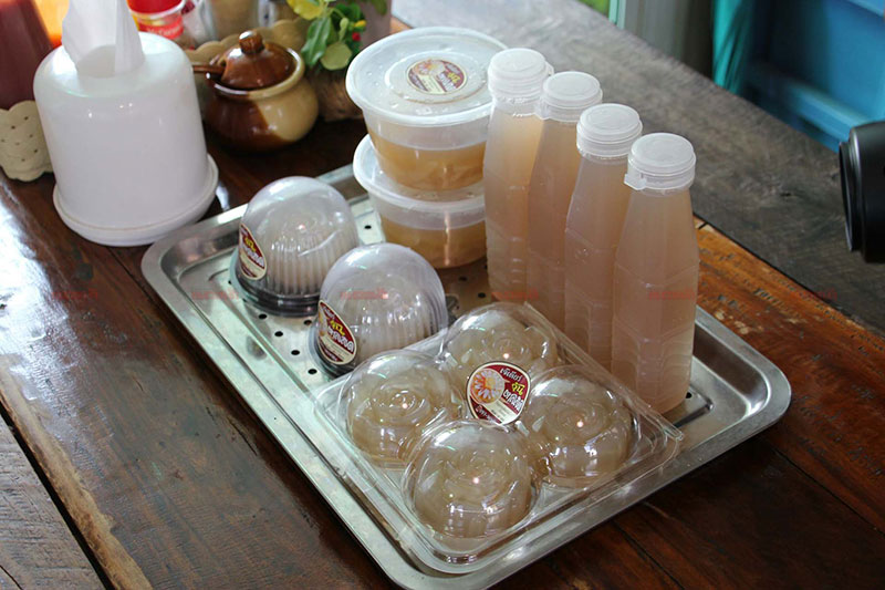 13 มี.ค.61 ผู้สื่อข่าวรายงานว่าในช่วงสภาพอากาศร้อนอย่างนี้วุ้นลูกตาล ซึ่งเป็นขนมที่ขึ้นชื่อของ อ.วัดโบสถ์ จ.พิษณุโลก ในขณะนี้กำลังขายดีอย่างมาก เนื่องจากกินแล้วรู้สึกสดชื่น ดับกระหายคลายร้อน โดยเฉพาะที่ร้านกาแฟสดวัดโบสถ์ อ.วัดโบสถ์ จ.พิษณุโลก ซึ่งเป็นร้านที่จำหน่ายวุ้นลูกตาล ผลิตภัณฑ์ของดีอำเภอวัดโบสถ์ ที่ในช่วงฤดูร้อน อย่างนี้มียอดสั่งจองจำนวนมาก