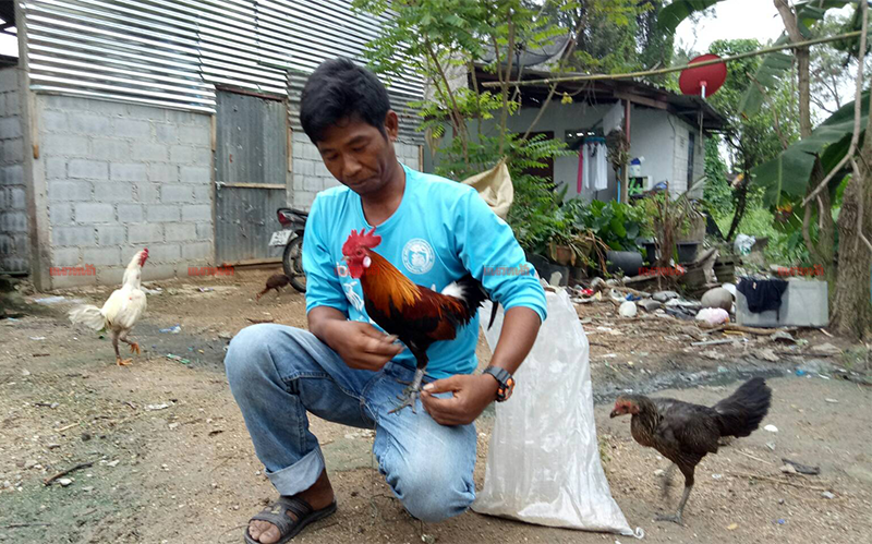 โต้งเพื่อนรัก หนุ่มอบต.พาไก่ป่าเกาะบ่าตระเวนเที่ยวทั่วหมู่บ้าน