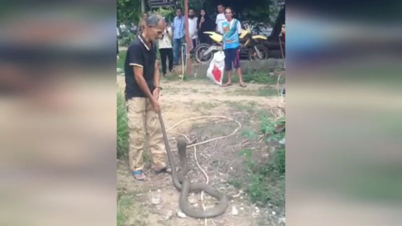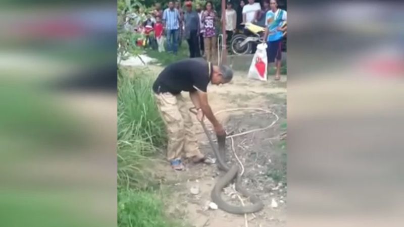 18 มี.ค.61 ผู้สื่อข่าวรายงานว่า โลกโซเชียล มีการเผยแพร่คลิปสุดทึ้งของหนุ่มใหญ่คนหนึ่งที่จับงูจงอางยักษ์ด้วยมือเปล่าอย่างง่ายดาย คลิปมีความยาว 2.35 นาที ที่บันทึกจากผู้ที่อยู่ในเหตุการณ์ ที่เกิดขึ้นในจังหวัดแห่งหนึ่งทางภาคใต้ เป็นคลิปที่ชายคนหนึ่งอายุประมาณ 45 – 50 ปี จับงูจงอางขนาดใหญ่ยาวกว่า 4 เมตร ด้วยมือเปล่าทั้งสองมือจับที่หางของงูจงอาง ก่อนที่งูจงอางยักษ์จะเลื้อยหันมาเผชิญหน้ากับชายดังกล่าว จนเกิดการจ้องมองหน้ากัน