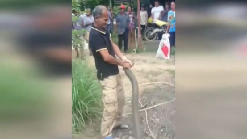 จนกระทั้งสามารถจับจับงูจงอางยักษ์ได้สำเร็จ ท่ามกลางเสียงลุ้นระทึกของชาวบ้านเป็นจำนวนมากที่มุงดูเหตุการณ์ ต่างทึ้งในความสามารถของชายคนนี้ ที่สามารถจับงูจงอางยักษ์ด้วยมือเปล่า คาดว่าชายคนนี้จะเป็นหมองูตามความเชื่อของชาวบ้าน