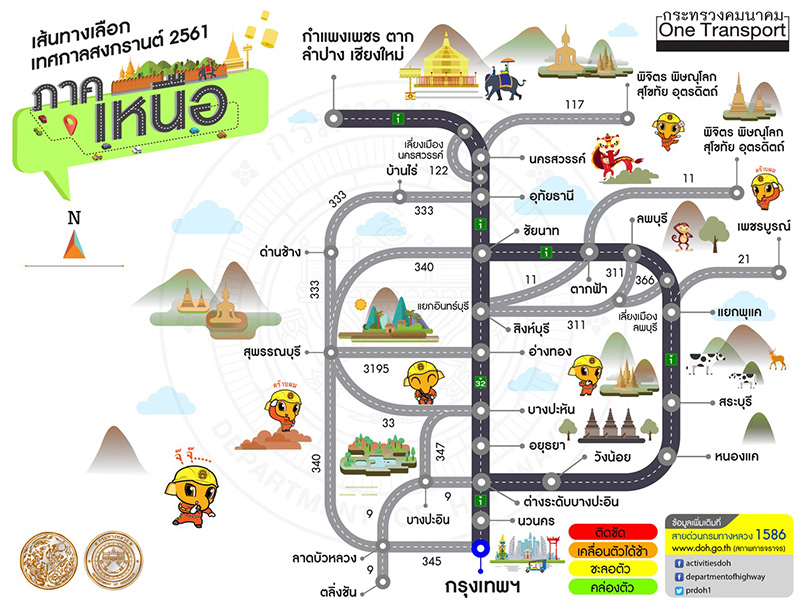 ทั้งนี้ ประชาชนที่จะเดินทางออกต่างจังหวัดในช่วงเทศกาลสงกรานต์ดังกล่าว เพื่อความปลอดภัยในการเดินทางและเลี่ยงเส้นทางการจราจรที่หนาแน่น ท่านสามารถศึกษาเส้นทางหลัก และเส้นทางรอง สำหรับการเดินทางสู่ภาคต่างๆ ช่วงเทศกาลสงกรานต์ ปี 2561 ก่อนใครได้ที่นี้ (ดูตามภาพ – สีดำเส้นทางหลัก สีเทาเส้นทางรอง)