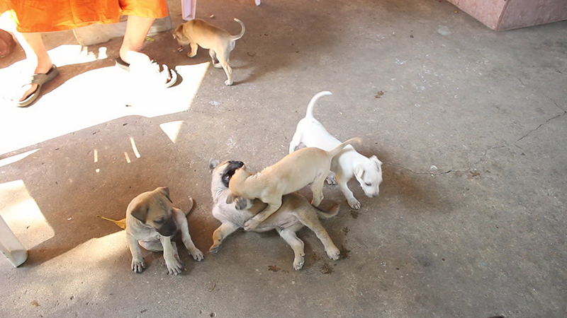 วันหนึ่งอาตมา กลับจากการเรียนหนังสือภาษาบาลีเพื่อกลับมายังกุฏิ ได้ยินเสียงลูกหมาร้องอยู่บริเวณหัวเกาะที่วัดจำนวน 2 ตัว จึงได้นำมาชุบชีวิตต่อลมหายใจเพราะเมตตาสงสารมัน จากนั้นก็จะเห็นมาอยู่เลื่อยจาก 10 เป็น 20-30 ตัว ปัจจุบัน มากถึง 100 ตัว ล้มหายตายจากไปบ้างก็มี โดยอาศัยข้าวก้นบาตรจากญาติโยม และจากปัจจัยที่ญาติโยมถวายทำบุญมา อาตมาก็นำมาแบ่งกุศลทานให้สัตว์เหล่านี้ได้อิ่มท้อง และมีชีวิตรอดตั้งแต่บัดนั้นเป็นต้นมา