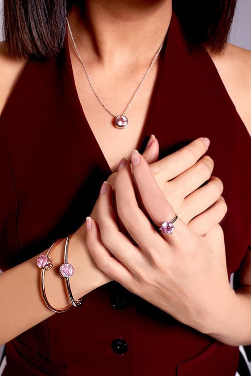 โดยกำไลกุหลาบดีไซน์ล่าสุดนี้อัญมณีรูปทรงดอกกุหลาบได้ถูกประกอบลงบนฐานตัวเรือนที่ประดับด้วยคริสตัลและลวดลายฉลุรูปหัวใจขนาดเล็ก ซึ่งกำไลกุหลาบนี้มีทั้งหมด2 สีด้วยกัน ได้แก่ สีเงิน และสีพิงค์โกลด์เหมาะสำหรับหญิงสาวที่ชื่นชอบการสวมใส่เครื่องประดับที่มีความหมายเชิงสัญลักษณ์ และช่วยเสริมความโชคดี เพราะอัญมณีรูปดอกกุหลาบสีชมพูนั้นเปรียบเสมือนพลังที่ช่วยให้จิตใจสงบ ผ่อนคลาย และอ่อนโยนขึ้น อีกทั้งยังช่วยกระตุ้นให้รู้สึก ถึงความรัก ความชื่นชม และสีชมพูยังช่วยดึงดูดความอ่อนเยาว์ ความมั่นใจ ความสนุกสนาน และยังเสริมสร้างเสน่ห์ให้กับผู้สวมใส่อีกด้วย