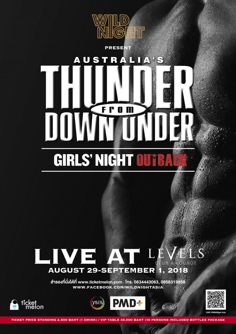 กลับมาตามคำเรียกร้องพร้อมกระชากหัวใจสาวๆกับหนุ่มๆกล้ามแน่นส่งตรงจาก ‘ประเทศออสเตรเลีย’ WILD NIGHT Presents Australia’s Thunder From Down Under LIVE IN BANGKOK 2018 at Levels Club