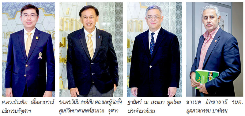 ศ.ดร.บัณฑิต เอื้ออาภรณ์ อธิการบดี จุฬาลงกรณ์มหาวิทยาลัย และ รศ.ดร.วินัย ดะห์ลัน ผู้อำนวยการและผู้ก่อตั้งศูนย์วิทยาศาสตร์ฮาลาล จุฬาฯ ต้อนรับ ฯพณฯ ซาเยด อาร์. อัลซายานี (H.E. Mr. Zayed R. Alzayani) รัฐมนตรีกระทรวงอุตสาหกรรมพาณิชย์และการท่องเที่ยว ประเทศบาห์เรนและคณะ ให้เกียรติเยี่ยมชมศูนย์วิทยาศาสตร์ฮาลาล จุฬาลงกรณ์มหาวิทยาลัย