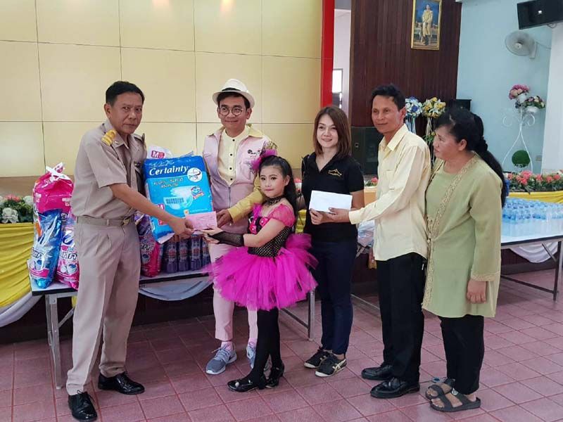 ‘น้องฟ้าใส’ นำทีมเลี้ยงอาหารกลางวันคนพิการ