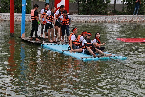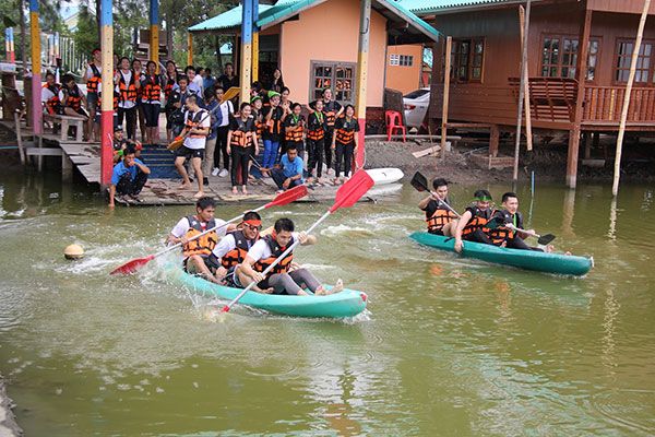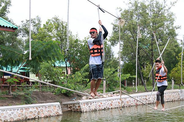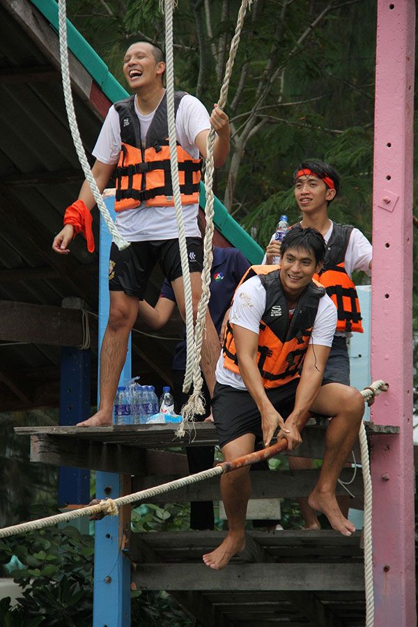 “บูม” เล่าให้ฟังถึงความสนุกในแต่ละฐานว่า “ผมและเหล่าผู้กล้าทีมสมิงจ้าวท่าตื่นเต้นมากครับ เริ่มต้นผมก็นำทีมโหนสลิงลุยน้ำเย็นชุ่มฉ่ำเล่นเอาเปียกปอนกันไปแบบเต็มๆ ต่อด้วยกิจกรรมสาวแพ สุดมัน ที่ใส่พลังกันแบบไม่ยั้ง มีเท่าไหร่สาวไปให้หมด ต่อด้วยกิจกรรมเดินบนสะพานเชือก ชวนหวาดเสียวเรียกเสียงกรี๊ดกร๊าดเฮฮาตกน้ำตกท่ากันไปหลายคน เท่านั้นยังไม่พอ ส่งท้ายด้วยการพายเรือคายัคแบบเบาๆ ที่เหล่าผู้กล้าโชว์ลีลาการพายเรือกันแบบไม่มีใครยอมใคร ดูสมิงจ้าวท่าว่ามันครบรสแล้ว ผู้ชมทางบ้านยังได้โอกาสสุดพิเศษมาร่วมกิจกรรมจำลองการปฏิบัติงานเป็นทีมแบบในละครกันอีกด้วย สนุกสนานเฮฮามากๆ เลยครับ”