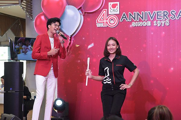งาน “CRG 40th Anniversary” จัดขึ้นโดย คุณณัฐ วงศ์พานิช กรรมการผู้จัดการใหญ่ บริษัท เซ็นทรัล เรสตอรองส์ กรุ๊ป จำกัด เป็นประธานในการจัดงาน ภายในงานได้รับเกียรติจาก คุณธีระเดช จิราธิวัฒน์, คุณแมรี่ จิราธิวัฒน์ ผู้บริหารผู้ซึ่งบุกเบิกธุรกิจอาหารมาตั้งแต่แรกเริ่ม พร้อมด้วย คุณอำไพพรรณ จิราธิวัฒน์ และผู้บริหารจากบริษัทกลุ่มเซ็นทรัล คุณญนน์ โภคทรัพย์ ร่วมฉลองความสำเร็จ นอกจากนี้ยังได้รับเกียรติจาก 5 สาวสวยเซเลบริตี้คนดัง ผู้มากความสามารถ นำโดย ปอนด์ หฤทัย ไชยันต์ ณ อยุธยา, กิ๊ฟ ญาดา รุ่งวัฒนภักดิ์ ,มิ้ง ณัฎฐิ์ประภา ชุณหะวัณ, มายด์ แพรวปรียา ชุมสาย ณ อยุธยา และ ลูกน้ำ สกาวรัตน์ ครุยทอง มิสแกรนด์สุราษฎร์ธานี ปี 2018 ที่มาร่วมฉลองในโอกาสพิเศษของซีอาร์จี