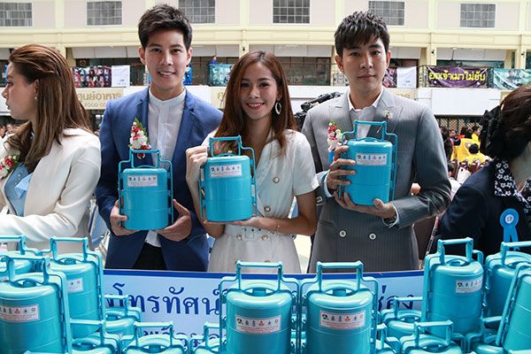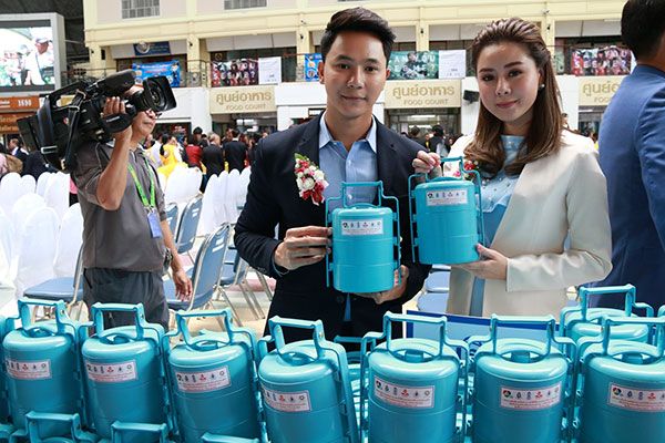 แห่งประเทศไทย ในพระบรมราชูปถัมภ์ นำปิ่นโตจัดเลี้ยงอาหารพระราชทานมอบแก่ผู้เดินทางบริเวณ