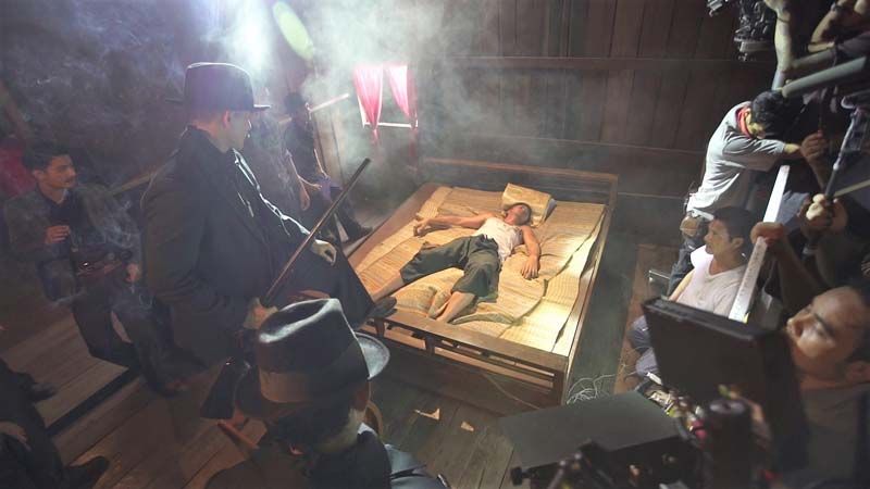 ด้วยวิช่วลที่ถึงลูกถึงคนเมื่อขุนพันธ์ฯหรือเสือบุตร์ตื่นขึ้นมากลางดึก กลับพบว่ารอบเตียงถูกล้อมไปด้วยแก๊งเชิ้ตดำโดยมี เสือใบ (เป้ อารักษ์ อมรศุภศิริ) อยู่ที่หน้าประตู ปลายเตียงมีเสือฝ้ายผู้ยิ่งใหญ่นั่งอยู่พร้อมปืนลูกซองก่อนที่จะลุกขึ้นมาจ่อยิงเผาขนที่กลางอกของขุนพันธ์ฯโดยไม่ทันได้ตั้งตัว จนถึงขั้นทั้งคนทั้งเตียงที่นอนอยู่พังลงไปพร้อมกับแรงอัดของกระสุนปืนที่จ่อยิงเข้าอย่างจัง พอถึงตอนถ่ายทำด้วยดีกรีความเป็นสุดยอดนักแสดงของทั้งคู่ก็ไม่ทำให้ทุกคนผิดหวังชนิดที่ว่าเทคเดียวเอาอยู่