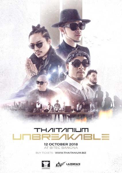 18 ปี ของการก่อตั้งวง ไทยเทเนียม ทั้งที งานนี้มีแต่จัดเต็ม เมื่อ 3 หนุ่ม “ขัน, เดย์, เวย์” แกนนำหลักของวง และเสริมทัพด้วยทีมเวิร์กที่แข็งแกร่ง บิ๊กคาโล่ และ ดีเจบุธดา เตรียมขึ้นคอนเสิร์ตใหญ่“THAITANIUM UNBREAKABLE CONCERT”จัดเต็มตั้งแต่ ลิสต์เพลง รูปแบบการโชว์ ไปถึงแขกรับเชิญ ทั้งรุ่นใหญ่ และ New Gen กว่า 10 ชีวิต ซึ่งจะถูกนำมาร้อยเรียงให้เป็นเรื่องราวของการแสดง ที่ THAITANIUM ไม่เคยทำแบบนี้มาก่อน แฟนตัวจริงฟิตร่างกายให้พร้อม แล้วไปเจอกัน วันศุกร์ที่ 12 ตุลาคม ณ Hall 105 ไบเทค บางนา จำหน่ายแล้ววันนี้ทาง www.thaitanium.biz ราคาบัตร GA: 1,500 THB. จากราคาปกติ 3,500 THB. VIP: 3,200 THB. จากราคาปกติ 5,000 THB. (Early Bird 2-10 สิงหาคมนี้)
