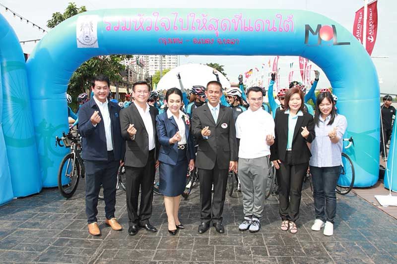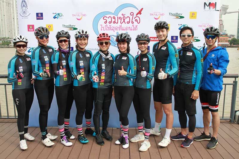 โดยแบ่งเป็นสองทีม ทีมปั่นจักรยานนำโดย ธัญญเรศ เองตระกูล,พริ้งค์กี้ สาวิกา,เอมี่-ซี โชติชัยชรินทร์,โดนัท มนัสนันท์,โดม ปกรณ์,โย ยศยวดี,เอ อัญชลี,มอส ปฏิภาน,ติ๊ก ชีโร่ ฯลฯ และทีมเจ็ทสกี นำทีมโดย เป็ก สัณณ์ชัย, แอนดรูร์ กรเศก,ตุ้ย ธีรภัทร์,ปีเตอร์ คอร์ป-ไดเรนดัล,เคลลี่ รัฐพงศ์,เข็ม ลภัสรดา และทีมเจ็ทสกี จาก YAMAHA เริ่มเดินทางจาก เอเซียทีค เดอะ ริเวอร์ฟร้อน กรุงเทพมุ่งหน้าสู่อำเภอเบตง จังหวัดยะลา ระหว่างทางให้ประชาชนร่วมบริจาคได้ตลอดเส้นทาง หรือโอนเงินบริจาคผ่านบัญชีธนาคารออมสิน ชื่อบัญชี”รวมใจไปให้สุด ที่แดนใต้” เลขบัญชี 020-2-4688504-8 หรือส่ง SMS พิมพ์ T ส่งไปที่ 4899503 บริจาค 50 บาท