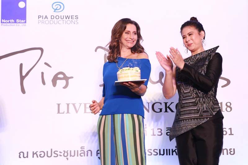 ไทยทีวีสีช่อง 3 ร่วมกับ เซิร์ซ เอ็นเตอร์เทนเม้นท์ และ นอร์ธสตาร์โปรดักชั่น จัดงานแถลงข่าวต้อนรับนักร้องเสียงดีเพีย เดาเวส ไปเมื่อวันจันทร์ที่ผ่านมา โดยมีนักแสดงและแขกผู้มีเกียรติ อาทิ ประชุม มาลีนนท์,ม.ล.ภูมิใจ ชุมพล, วิบูลย์ ลีรัตนขจร,ติ๊ก-กัญญารัตน์ จิรรัชชกิจ, แอน ทองประสม,ป๊อป-วราวุธ เลาหพงศ์ชนะ, หนิง-ศรัยฉัตร กุญชร ณ อยุธยา, ไอซ์-อมีนา กูล,เฌอเบลลล์-ลัลณ์ลลิน เตจะสา เวศซ์,จันจิ-จันจิรา ฯลฯ ร่วมต้อนรับ ซึ่งภายใน เพีย เดาเวส และนักเปียโนคู่ใจเบิร์น แวน เด้น บอส ก็ได้โชว์เพลงพิเศษพร้อมยิ้มปลื้มกับเซอร์ไพรส์วันเกิดเพียครบ 54 ปี ก่อนขึ้นแสดงคอนเสิร์ตการกุศลครั้งแรกในเมืองไทย “PIA Douwes-Livein Bangkok 2018” ในวันที่ 13 สิงหาคมนี้รอบหนึ่งทุ่มตรง ณ หอประชุมเล็ก ศูนย์วัฒนธรรมแห่งประเทศไทย จองบัตรได้ที่ไทยทิกเก็ตเมเจอร์