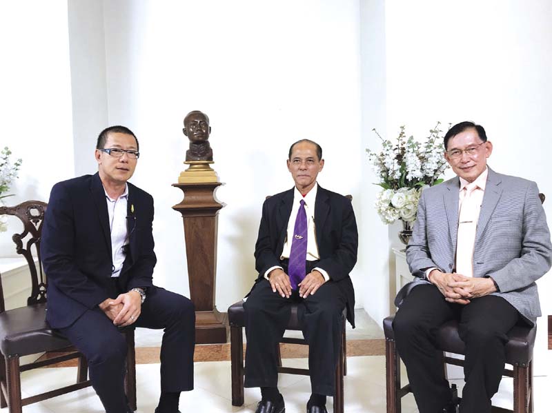 พิธีกร ดร.เฉลิมชัย ยอดมาลัย, พล.อ.พลางกูร กล้าหาญ เลขาธิการมูลนิธิฯ และ พล.ท.นพ. กฤษดา ดวงอุไร รองประธานกรรมการมูลนิธิฯ