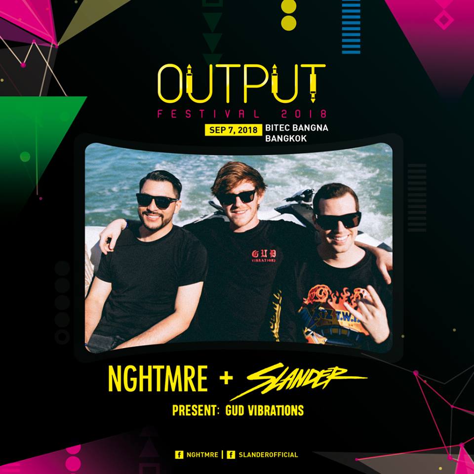 ต่อกันด้วย NGHTMRE & SLANDER Presents Gud Vibrations สองศิลปินเพื่อนซี้ ที่รัก และ หลงใหลในสิ่งเดียวกัน เลยออกทัวร์ร่วมกันมันซะเลย ซึ่งถึงแม้ว่าทั้ง NGHTMRE และSLANDER จะเคยแวะเวียนมาเมืองไทยแล้ว แต่นี่จะเป็นครั้งแรก ที่ทั้งคู่ขึ้นโชว์พร้อมกัน แบบเต็ม ๆ เตรียมซ้อมร้องเพลง Gud Vibrations แล้วไปตะโกนพร้อมกันให้สุดเสียง รับรองงานนี้จะมีแต่ Gud vibes only แน่นอน นอกจากนี้ ยังมีศิลปินเสริมทัพอีกมากมายที่จะประกาศในเร็วๆนี้