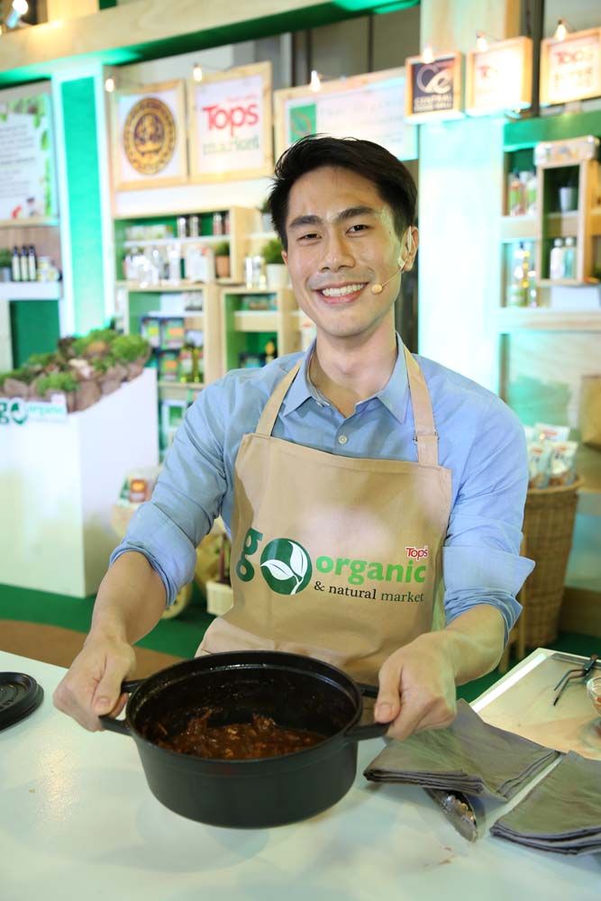 ด้าน เชฟหมอตั้ม-นายแพทย์ดิษกุล ประสิทธิ์เรืองสุข เชฟชื่อดังจาก มาสเตอร์เชฟ ไทยแลนด์ เผยว่า “ทั้งผัก เนื้อสัตว์ และวัตถุดิบ ออร์แกนิค มีเสน่ห์ ความอร่อยเฉพาะตัว และยังมีประโยชน์ต่อสุขภาพ โดยวันนี้ได้เลือกเมนูสปาเกตตีออร์แกนิค ราดสตูว์หมูเนเชอรัล ซึ่งใช้หมูมายช้อยส์เนเชอรัลพอร์ค ส่วนสะโพก ที่มีความนุ่มและมีไขมันต่ำ เพราะเป็นหมูที่เลี้ยงดูแบบธรรมชาติด้วยสมุนไพร ปราศจากยาปฏิชีวนะและฮอร์โมนเร่งการเจริญเติบโต ทำให้หมูมีเนื้อ นุ่ม อร่อย ซึ่งเทคนิคสำคัญคือ เราจะนำเนื้อหมูที่หั่นเป็นชิ้นๆ ลงไปจี่ในกระทะก่อน เพราะจะได้ความกรุบกรอบ ไม่ให้ความรู้สึกเหมือนการทานหมูต้มธรรมดา ในส่วนของผัก ให้นำหอมใหญ่ลงไปผัดในน้ำมันมะกอก ผัดจนนิ่ม แล้วใส่แครอท เซเลอรี่ มะเขือเทศ ลงไป ซึ่งจะได้รสชาติความหวานหอมจากผักต่างๆ จากนั้นใส่ไวน์แดงลงไป ตามด้วยน้ำสต๊อก และหมู พร้อมนำไปอบ 2 ชั่วโมง แล้วนำมาราดเส้นสปาเกตตีออร์แกนิค เพิ่มความหอมด้วยการโรยใบครามและใบโรสแมรีทั่วจาน เป็นเมนูเพื่อสุขภาพที่สามารถทำเองได้ง่ายๆ ด้วยตัวเองเลยครับ”