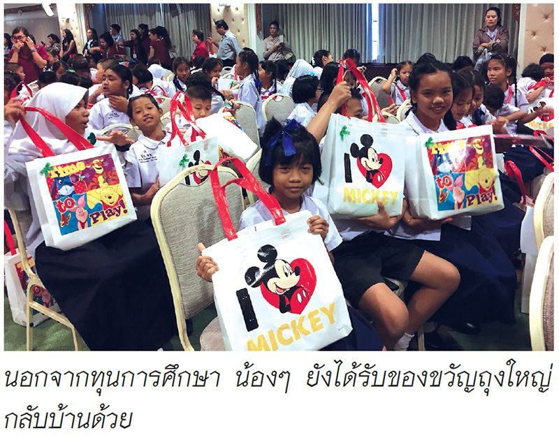 ซึ่งในปีนี้ มูลนิธิฯ ได้รับความอนุเคราะห์จากผู้ใหญ่ใจดี องค์กร ห้างร้านบริษัท ที่ได้รับสนับสนุนทั้ง เงินในการมอบทุน สิ่งของ อาหารและขนมมามอบให้กับเด็กๆ อาทิ ยุพา ล่ำซำ, อุไร คุณานันทกุล, สุวิมล มหากิจศิริ, ดร.อรอนงค์ ประสังสิต, รักษา แสงภู่,เพ็ญศรี สุขเจริญผล, ดวงใจ ตั้งสง่า, บมจ.ซีพีออลล์ มอบ ขนมจีบ-ซาลาเปา, วรวิทย์ เจนธนากุล มอบข้าวมันไก่, บมจ.ยูไนเต็ดฟู้ดส์ โดย ศุลีมาศ สุทธิสัมพัทน์ มอบขนมเซียงไฮ้แม็กซ์และข้าวโพดอบกรอบบิ๊กนอยส์, กรีนสปอต (ประเทศไทย) มอบเครื่องดื่มไวตามิ้ลค์, ภัตตาคารจันทร์เพ็ญ มอบข้าวผัดไก่สำหรับนักเรียนอิสลาม, บมจ.ดับเบิ้ลเอ(1991) มอบสมุด และโรงงานลักกี้สตาร์การทอ มอบถุงใส่ของขวัญ