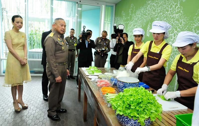 พลอากาศเอกสถิตพงษ์ สุขวิมล เยี่ยมชมภายในร้านโกลเด้น เพลซ สาขาถนนสุโขทัย โดยมี นวลพรรณ ล่ำซำ ต้อนรับ