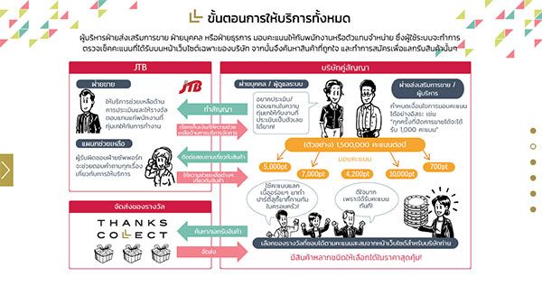 มร.โคทาโร่ คาเนโกะ ผู้จัดการส่วนพัฒนาธุรกิจ บริษัท เจทีบี (ไทยแลนด์)จำกัด ผู้นำด้านการท่องเที่ยวอันดับหนึ่งของประเทศญี่ปุ่น และนายฮิคารุ ทานิ (Hikaru Tani) ประธานบริษัท ได้เปิดตัวโปรแกรมใหม่ Employee Relationship Management (ERM) ซึ่งเป็น Point Program ที่มีชื่อว่า “THANKS COLLECT” คือโปรแกรมที่จะช่วยเพิ่มความพึงพอใจให้กับพนักงานผู้ที่ทำงานให้กับองค์กรหรือช่วยเสริมสร้างความสัมพันธ์ที่มีต่อองค์กร ส่งเสริมการสื่อสารในองค์กรและพัฒนาประสิทธิภาพการทำงานร่วมกัน พร้อมดึงศักยภาพและเพิ่มขีดความสามารถในการทำงานของพนักงานให้สูงขึ้นผ่านระบบสะสมคะแนน
