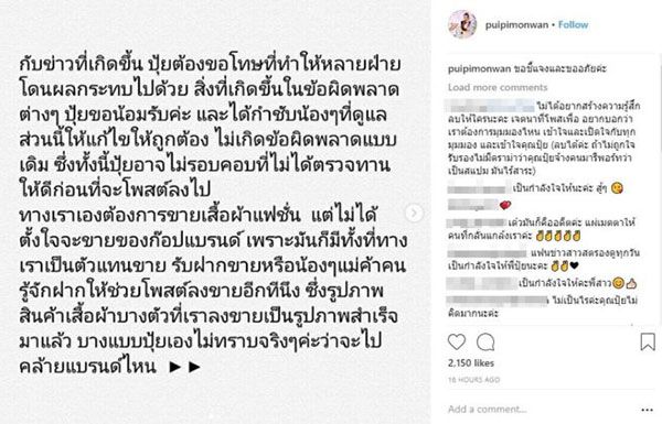 ร้อนแรงบนโลกโซเชียล หลังจากที่มีคนมาตั้งกระทู้พันทิป ในหัวข้อว่า “คนดังในวงการ ขายของผิดกฏหมายหราหน้าไอจี อย่างนี้ก็ได้เหรอ??” โดยเนื้อหาในกระทู้จวกถึงการขายสินค้าก็อปปี้แบรนด์เนม โดยมี พิธีกรชื่อดัง “ปุ้ย พิมลวรรณ หุ่นทองคำ” เป็นเจ้าของอินสตาแกรมขายสินค้าดังกล่าว แถมยังนำภาพของดารา-นักแสดงมาใช้โปรโมทเสื้อผ้าอีกด้วย นำมาซึ่งกระแสวิจารณ์