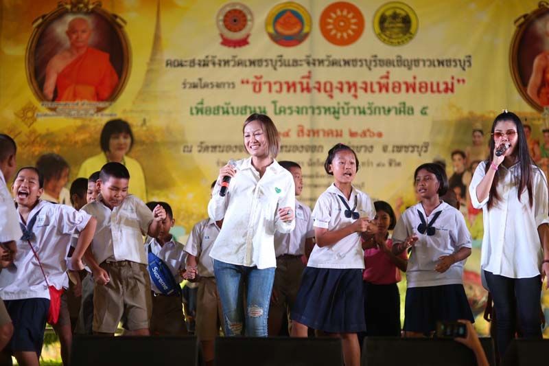 ดร.ทวีศักดิ์ เผ่าบัณฑูร รองประธานอนุกรรมการฝ่ายประชาสัมพันธ์โครงการหมู่บ้านรักษาศีล ๕ นำคณะศิลปินดาราสายบุญ อาทิ ดร.วโรดม ศิริสุข ผู้อำนวยการฝ่ายผลิตสถานีโทรทัศน์ไอพีเอ็ม, เพ็ญจันทร์ วงศ์สมเพ็ชร ผู้กำกับละคร, เกตน์ศิรณี บุญมา-บุญรุ่ง เต๋งจงดี ผู้จัดละคร, นงค์นุช ภิรมย์รื่น ผู้กำกับละครกฤตธน การะเกตุ ผู้กำกับละคร, สิปปกรอมรเดชาโชติ, วรรณษา ทองวิเศษ, สาวิกา กาญจนมาศ, ศรุตา เรืองวิริยะ, ดร.รภัทร เอกนิธิเศรษฐ์, ธเนศ ภูผานี (แจ๊ค เชิญยิ้ม), อภิสรา รักชาติ, ธนากฤต พาณิชตระกูล, พิศุทธิ์ เพศหงส์, นพวรรธน์ อภิภัสร์เดชากุล, พรชนก กุหลาบซ้อน,เพชรา วงศ์เทวัญ, ปุณฐิภาภัคร์ สุวรรณราช,ภัทราพร ไล้ปรีดา, นรภัทร อินทิพย์, อธิวัฒน์จิรชยาสินธรณ์, ธนภณ โอภาสธัญกร, วิทวัส แก้วพรรณนา, อดิศร พลายแก้ว, วิสุตาภัทร อุบลรัศมี, ไอณัฐชา นภสวัสดิรังสี จำนวนเกือบ 40 ท่าน เข้าร่วมกิจกรรม “ข้าวหนึ่งถุงหุงเพื่อพ่อแม่”เพื่อสนับสนุนโครงการหมู่บ้านรักษาศีล ๕โดยศิลปินดารานักแสดงกว่า 30 ชีวิต พร้อมด้วย ต้อม-รชนีกร และ เอ็ม-กันตวัจน์เดินทางมาเสริมทีม เพื่อสร้างความสุข ความสนุก ด้วยการร้องเพลง เล่นเกม และแจกของรางวัลให้กับน้องๆ นักเรียนที่มาร่วมในโครงการนี้ ณ วัดหนองจอก อ.ท่ายาง จ. เพชรบุรี