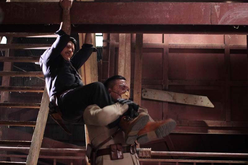 โดยเป็นการผสมผสานระหว่างแอคชั่น คิวปืน คิวดาบ เข้ากับศิลปะการต่อสู้ในแบบ Martial Arts พร้อมด้วยคาถาอาคมของ 3 ตัวละครในพื้นที่ที่จำกัด และมีความโลดโผนจากที่สูงทำให้นักแสดงทั้งหมดต้องมีการขึ้นสลิง ห้อยโหนตัวกลางอากาศ ซึ่งการถ่ายทำเฉพาะซีนนี้ถึง 2 คืน เรียกได้ว่า บู๊กันยันสว่างเลยทีเดียว แต่ละคนต่างงัดฝีไม้ลายมือทั้งหมดออกมา ล้มแล้วลุกขึ้นมาต่อสู้เทคต่อเทคจนเกิดเป็นภาพความมันส์ของแอคชั่นเหนืออาคมบนจอภาพยนตร์