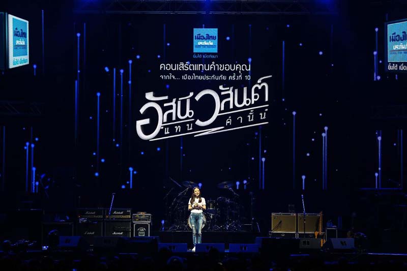 ถือเป็นคอนเสิร์ตมันส์ ซึ้ง ถึงใจ แบบมาราธอนน็อนสต๊อปแห่งปี เพราะเรียกเสียงกรี๊ดจากแฟนๆ สนั่นลั่น อิมแพค อารีน่า เมืองทองธานี ตลอด 3 ชั่วโมงเต็ม!! กับ คอนเสิร์ตแทนคำขอบคุณจากใจ… เมืองไทยประกันภัย ครั้งที่ 10 อัสนี-วสันต์ “แทนคำนั้น” โดย มาดามแป้ง-นวลพรรณ ล่ำซำ กรรมการผู้จัดการ และประธานเจ้าหน้าที่บริหาร บริษัท เมืองไทยประกันภัย จำกัด (มหาชน) พร้อมผู้บริหารและพนักงานร่วมส่งมอบของขวัญสุดพิเศษขอบคุณลูกค้าคนพิเศษและสมาชิก Muang Thai Friends Club นอกจากทัพเพลงดังกว่า 40 เพลงจาก “พี่ป้อม” “พี่โต๊ะ” แล้ว ยังเซอร์ไพรส์สุดๆ กับแขกพิเศษอย่าง BNK48 และ ปู แบล็กเฮด และเมื่ออิ่มหัวใจกับความสนุกกันเสร็จแล้วก็อิ่มบุญกันต่อ เพราะรายได้จากการจำหน่ายบัตร 1,000 ที่นั่ง มอบให้โรงพยาบาลจุฬาลงกรณ์ สภากาชาดไทย โดยไม่หักค่าใช้จ่ายใดๆ ทั้งสิ้น