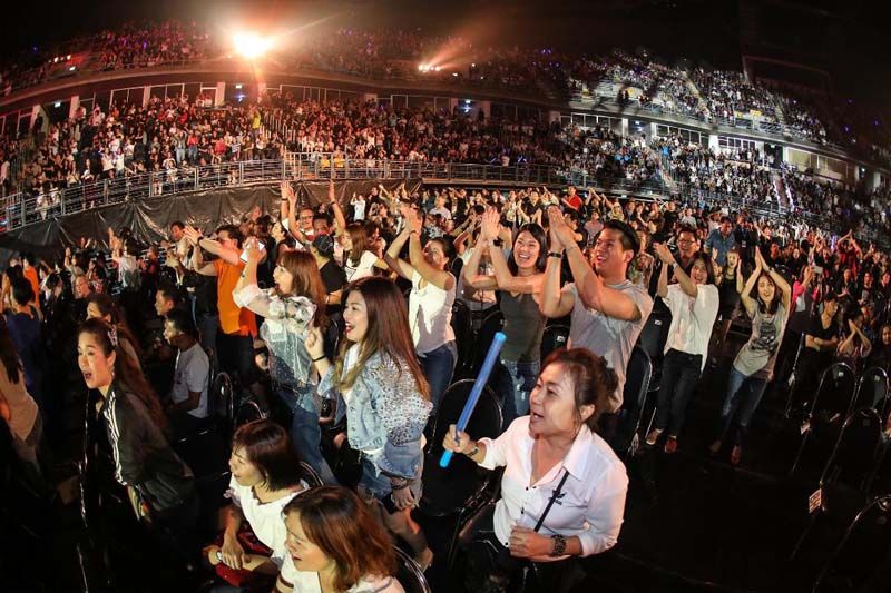 สำหรับบรรยากาศ คึกคักกันตั้งแต่ประตูคอนเสิร์ตยังไม่ทันเปิด เพราะมีบรรดาแฟนเพลงแห่มาชมกันอย่างเนื่องแน่น พอถึงเวลา “พี่ป้อม” “พี่โต๊ะ” ตำนานดูโอร็อคของไทยเปิดตัวด้วยเพลง “กรุงเทพมหานคร” ก่อนจะสร้างปรากฏการณ์ความมันส์ซะใจและหวานชวนซึ้งแบบครบรส ด้วยการขนคาราวานเพลงฮิตมาร้องให้แฟนๆ ฟังเต็มอิ่มสะใจตั้งแต่ต้นจนจบแบบ 3 ชั่วโมงรวด เช่นเพลง “รักเธอเสมอ”,“สับปะรด”, “เธอปันใจ”, “ตาอยู่”, “หนึ่งมิตรชิดใกล้”, “ลงเอย”, “บังเอิญ”, “หัวใจสะออน”, “ยินดีไม่มีปัญหา”, “กุ้มใจ”, “ร่ำไร”,“ลาก่อน” เป็นต้น ทำเอาแฟนๆ กรี๊ดสนั่นฮอลล์และร่วมร้องร่วมเล่นเต้นต่อเนื่องไม่หยุด ก่อนที่ทุกคนจะกรี๊ดสลบกับความน่ารักของแขกรับเชิญสุดคิ้วท์ อย่าง “BNK48” ที่มาพร้อมเพลงดังแห่งปี “คุกกี้เสี่ยงทาย” ที่ไม่ว่าใครก็ร้องได้และเต้นได้ และเพลง “Bangkok48” นอกจากนั้น ยังมี ปู แบล็กเฮด แห่งวงร็อกหัวดำ มาร่วมโชว์พลังเสียงในเพลง “ฉันอยู่ตรงนี้” และ “เพียงกระซิบ” ที่มันส์จนลุกมาโดดกันเพียบและคอนเสิร์ตแบบจัดเต็มทั้งทีมาดามแป้งก็มีเซอร์ไพรส์ ด้วยการร่วมโชว์เสียงหวานๆ กับศิลปิน ในเพลงความหมายดีๆ อย่าง “แทนคำนั้น” ที่ตั้งใจมอบให้แก่ลูกค้าคนพิเศษทุกคนที่มาชมคอนเสิร์ตครั้งนี้ เรียกว่าปิดฉากไปอย่างประทับใจ อิ่มใจและอิ่มบุญทุกคน