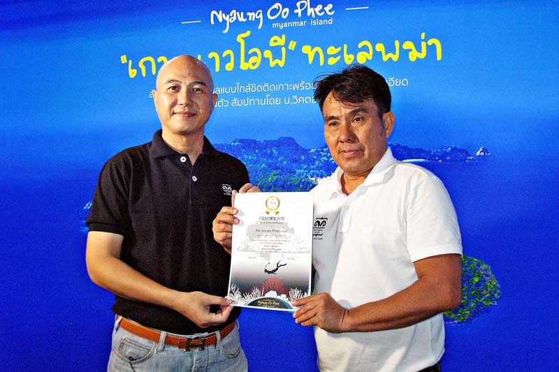 ภายในงานได้รับเกียรติจาก ALEX ZAW WIN รองประธานบริหาร และ สมชาย จิตรมงคล ผู้จัดการบริหาร บริษัท วิคตอเรียคลิฟฟ์ โฮเต็ลแอนด์รีสอร์ท จำกัด เป็นผู้มอบประกาศนียบัตรให้แก่นักท่องเที่ยวชาวไทย 16 คน ซึ่งเป็นนักท่องเที่ยวกลุ่มแรกที่ได้มีโอกาสไปพิชิต “แหลมทับทิม” จุดดำน้ำแห่งใหม่ของเกาะนาวโอพี เมื่อช่วงเดือนพฤษภาคมที่ผ่านมา