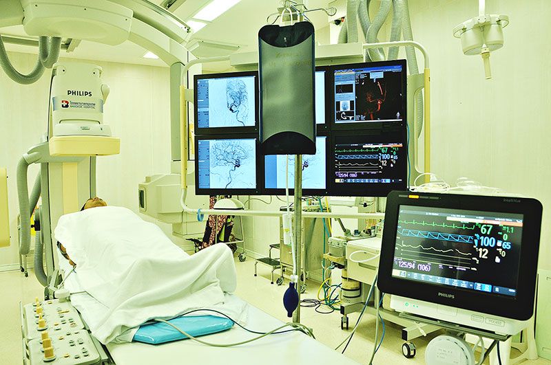 ทั้งนี้ เพื่อให้เห็นภาพรวมของการรักษาโรคหลอดเลือดสมองอุดตัน แพทย์จะเลือกใช้ MRI สแกนเนื้อสมอง เพราะสามารถเห็นได้ชัดเจนและเห็นความเสียหายดีกว่าการทำ CT Scan ที่จะทำให้ได้ข้อสรุปการรักษาที่ตรงจุดและมีประสิทธิภาพ โดยมีเครื่อง Bi-plane DSA เป็นอุปกรณ์ชิ้นสำคัญในการดึงลิ่มเลือดอุดตัน การเปิดหลอดเลือดมีความเสี่ยงแต่ทีมแพทย์จะใช้วิธีการผ่าตัดแบบแผลเล็ก (Minimal Invasive) ซึ่งจะเจ็บปวดน้อยกว่าเพราะไม่ได้เปิดกะโหลกศีรษะ แต่จะใช้วิธีการใส่สายสวนไปเปิดหลอดเลือดสมองอุดตันที่บริเวณขาหนีบ การทำงานคือเมื่อใส่สายสวนเข้าไป สายสวนจะทำหน้าที่ในการฉีดสีซึ่งเป็นสารทึบรังสีเพื่อที่จะแสดงให้เห็นแนวของหลอดเลือด การที่สีวิ่งไปถึงบริเวณใดแสดงว่ายังมีการไหลของเลือดไปได้ตามทางเหมือนแม่น้ำ แต่ถ้าเกิดการอุดตันจะมองไม่เห็น แสดงว่ามีการอุดตันและสมองขาดเลือดบริเวณนั้น แพทย์จะพิจารณาว่าจะใช้วิธีดูดหรือนำลวดหรือตะแกรงเข้าไปเกี่ยวลิ่มเลือดที่อุดตัน โดยจะอธิบายกับคนไข้ง่ายๆ ว่า เหมือนเราล้างท่อน้ำ แต่นี่คือท่อน้ำในสมองที่ไม่ได้มีความแข็งแรงเหมือนท่อเหล็กหรือพลาสติก มีความบอบบางกว่าหลอดเลือดหัวใจด้วยซ้ำ ฉะนั้นจึงมีความเสี่ยงเกิดขึ้นได้ การผ่าตัดต้องทำด้วยความระมัดระวังโดยแพทย์ที่มีประสบการณ์