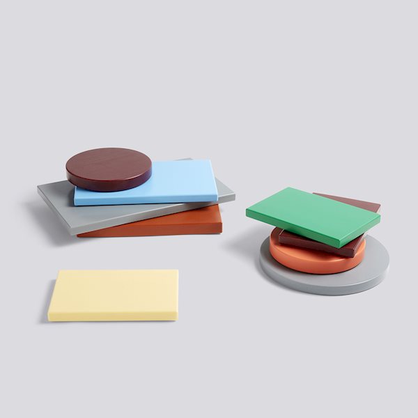 They include a chopping board made of hygienic polyethylene with stay-put dots underneath for stability. Easy to clean, it is available in round or square shapes and in different sizes and colours. The chopping board can also serve as presentation trays for cheese, tapas and appetisers.