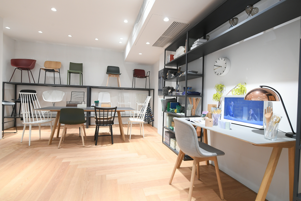 The first floor is dominated with Hay’s furniture and accessories set out in room-by-room format and covering a study, living room, dining room and outdoor terrace. The upper floor, which is yet to open, will later showcase another Danish furniture band Gubi, which is known for its products that are simple in form but come in luxury materials.