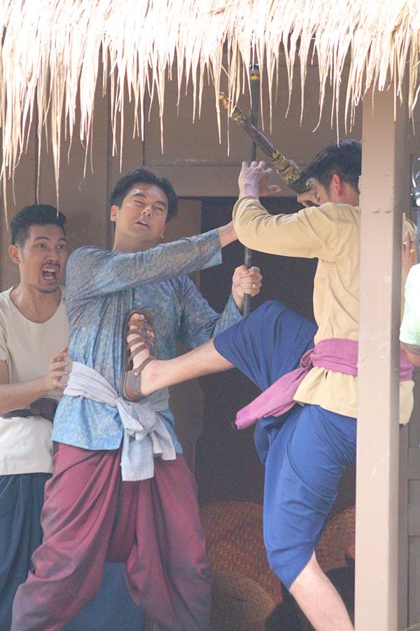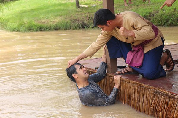 ฉากนี้เป็นตอนที่หมื่นทิพ(อ๊อฟ-ชนะพล)เดินเข้าไปหาเรื่องขุนไกร(พอร์ช-ศรัณย์) ถึงเรือนแพ ว่ามานั่งสานกระบุ้งตะกร้าเพราะระงับอารมณ์ไข้สงคราม ทำไมไม่ไปบวชให้รู้แล้วรู้รอด ขุนไกรพยายามไม่สนใจ แต่หมื่นทิพก็ยิ่งไม่ลดละ ยิ่งกวนประสาทหนักจนขุนไกรเหลืออดเข้าฟาดฟัน เตะต่อยกับหมื่นทิพจนตกคลอง ขุนไกรจะซัดต่อ แม่หญิงเยื้อน(แนท-ณัฐชา)ดันร้องห่มร้องไห้อ้อนวอนพอร์ชให้เลิกแล้วต่อกัน