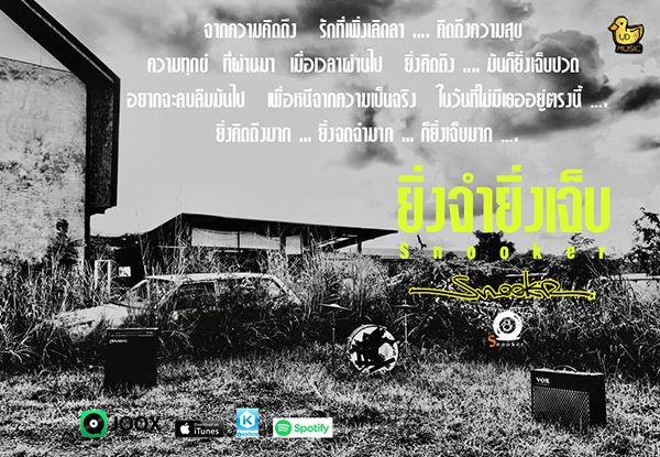 ติดตามผลงานของ “Snooker” เพลง “ยิ่งจำยิ่งเจ็บ”สังกัด “UD MUSIC” ได้แล้ววันนี้ทางสถานีวิทยุทั่วประเทศ ทางยูทูป Channel UD MUSIC, Joox, Spotify, Apple Music, KK BOX และสามารถโหลดเสียงรอสายได้ทุกเครือข่ายแล้ววันนี้ ติดต่องานแสดงงานโชว์ 082 495 5779/ 081 637 1415