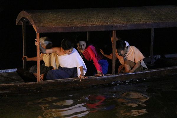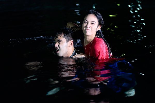 ฉากนี้เป็นตอนที่เรือของดาวเรือง(นาว-ทิสานาฏ)ถูกล่มทุกคนตกใจรวมถึงดาวเรืองด้วย พอดาวเรืองโผล่ขึ้นมาเหนือน้ำก็รู้สึกแปลกๆว่ามีคนมาดึงขาดึงแขนเอาไว้ ดาวเรืองตกใจกลัวคิดว่าเป็นผีเลยรีบว่ายน้ำสะบัดตัวออกมาแล้วก็รีบว่ายน้ำเข้าฝั่ง