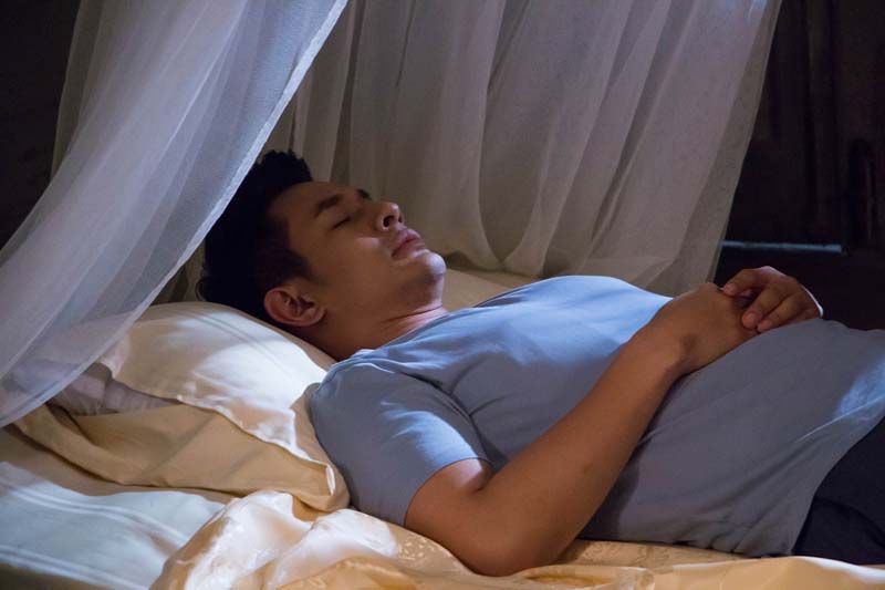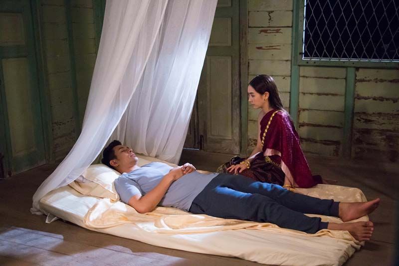 ฉากนี้เล่าเรื่องราว ตอนที่ เจ้าฟ้าทิพฉาย (พีชญา วัฒนามนตรี) ติดตาม ดร.ภาธร (อรรคพันธ์ นะมาตร์) กลับมาที่บ้านพัก ในความเหนื่อยล้า ดร.ภาธร หลับไป แต่ในสายตาของเจ้าฟ้าทิพฉาย ภาพที่เธอเห็น คือดร.ภาธร ลืมตาตื่นขึ้น สายตาของทั้งสองประสานกัน ภาธรเอื้อมมือดึงร่างเจ้าฟ้าทิพฉาย ให้โน้มตัวลงมา พร้อมกับประทับจูบลงบนริมฝีปากของเธอ