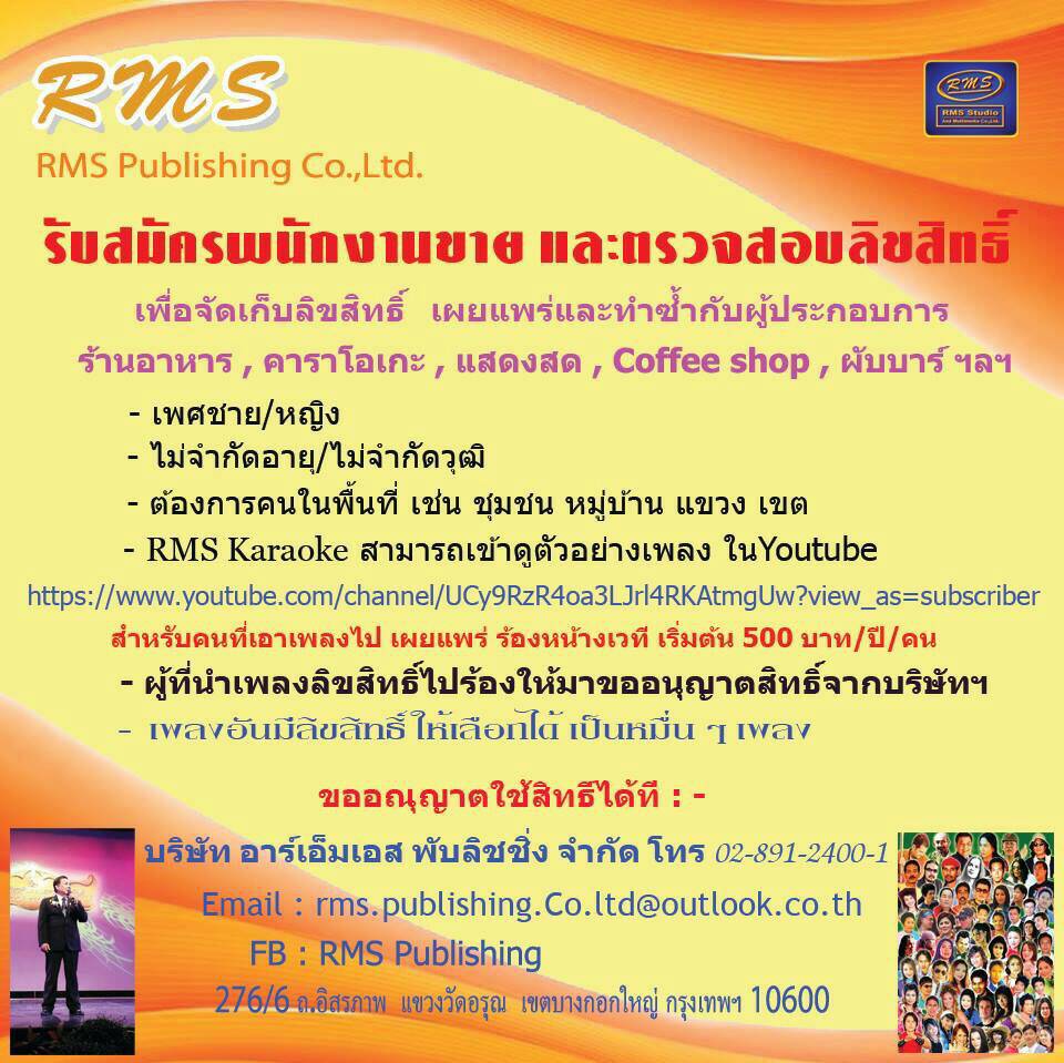 นายจำรักษ์ เอื้ออารีนุสรณ์ ผู้บริหารด้านลิขสิทธิ์ บริษัท อาร์เอ็มเอส สตูดิโอ แอนด์ มัลติมีเดีย จำกัด กล่าวถึงการบริหารงานด้านลิขสิทธิ์เพลงของอาร์เอ็มเอสฯ ที่เน้นความถูกราคาเบาๆ ให้ผู้ใช้ได้มีส่วนร่วมว่า “ที่ผ่านมานักร้องเอาเพลงไปร้องตามงานมีปัญหาหนัก เนื่องด้วยเจ้าของสิทธิ์หรือผู้ที่ได้รับมอบอำนาจไปไล่ตามเก็บบางงานผู้ใช้เขาก็ไม่รู้ ซึ่งทางอาร์เอ็มเอสฯมีเพลงอยู่หลายหมื่นเพลงที่ตลาดยังใช้กันอยู่ เช่นของ อาภาพร มยุรา ฟ้าสีทอง ยิ่งยง เอกชัย หลง ลงลาย วงอมตะหลายแนว ซึ่งทั้งหมดนี้สามารถที่จะไปร้องแสดงสดได้ตามร้านอาหารทั่วไปโดยที่จะคิดค่าลิขสิทธิ์กับนักร้องต่อคนต่อเพลง 500 บาทต่อปี และสามารถเผยแพร่ได้ตลอด ”